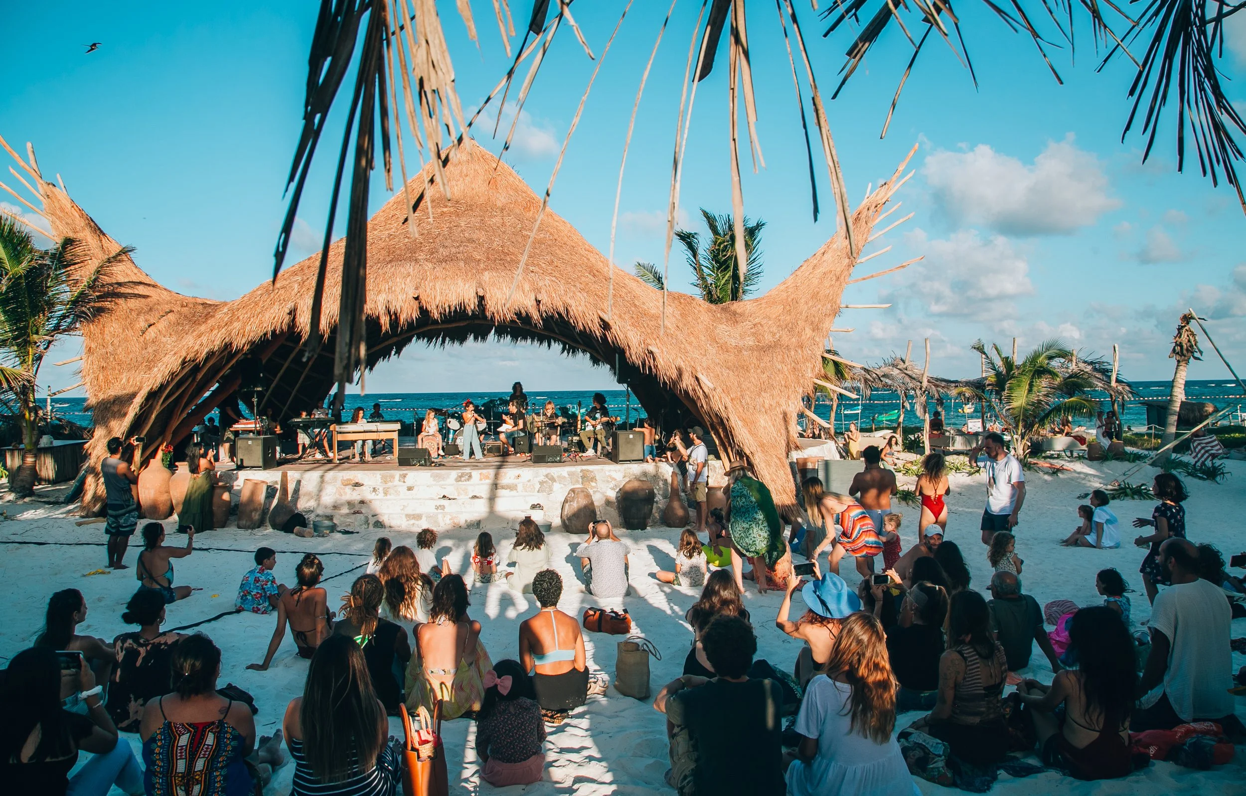 Experience wellness as a path to awareness and connection through our Yoga program. Share the community's energy through Temazcal, Cacao Ceremonies, Wisdom Circles, Sacred Fires, Sound Healing experiences, gatherings around the table, and plenty of sun and music at our beach club.